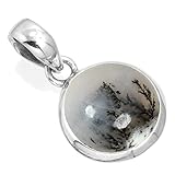 JEWELOPORIUM 925スターリングシルバー ステートメントペンダント 女性用 12mm ラウンドジェムストーン ハンドメイドジュエリー ギフト用(99520_P), 金属 ジェムストーン, デンドライトオパール。