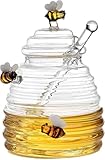 EVREFINハニーポット 蜂蜜 はちみつ ガラス キャニスター 蜂蜜 ディスペンサー 透明 ガラス製 撹拌棒付き 天然 安全 耐久性 蜂蜜スプーン 蜂蜜容器 はちみつ保存容器 調味料入れ 家庭用 キッチン用