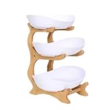 Traxomi 陶磁器製フルーツプレート 創意的 3 段式 竹木スタンド付 果物乾菓子菓子皿兼用 自由分解洗浄簡便 底部カード溝設計 家庭用収納トレイ (白い三層)