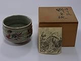 渋草焼 野立碗 渋草柳造窯野点碗 赤絵花鳥文 鳥 染付 茶道具 茶器 抹茶碗 共箱付き 陶磁器 約10cm×高さ:約8cm